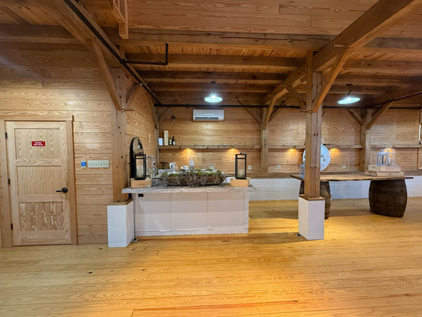 There is ample room to build a stage and create a fully private experience, while the interior adds a warm rustic charm with hand-cut wood crafted by the talented woodworker who once lived there. The scent of pine fills the space, making it feel both inviting and unforgettable.